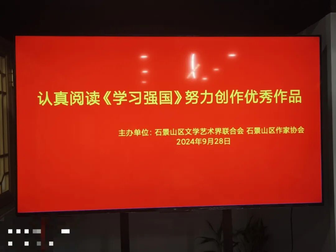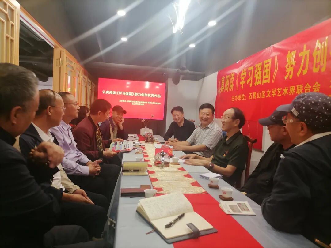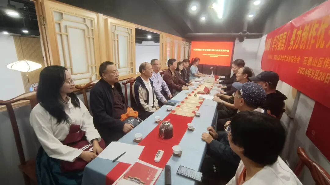 2024年9月28日,由北京市石景山区文学艺术界联合会和石景山区作家协会主办的“学习强国”优秀作家表彰会在京召开。石景山区作协主席李金明,石景山区融媒体中心客户端运营部主任张立臣,石景山区作协副主席代志强、胡松夏、监事长董峰以及重点作者王新立、刘会生、卫如珍、任继兵、周治龙、王祖芝、项宏、武秀清、颜存、周芸、贺红梅等人参加。