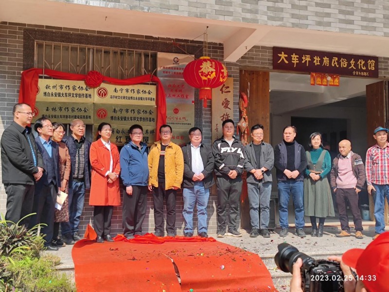 这场揭牌仪式,也让各界目光再次聚焦广西壮府艺术村。这里成为区内外文艺家交流的平台。墙上挂满包括鬼子、凡一平、石才夫、张冬峰等名家的墨宝,书架上书籍琳琅满目,弥漫着书的墨香。近年来,村长冯三四以壮府艺术村为基地,热情接待过来自黑龙江、内蒙古、陕西、台湾乃至美国以及亚欧和东盟国家等地的文友。席间谈笑风生,思想交融,构成一幅幅动人的文化交流画卷。