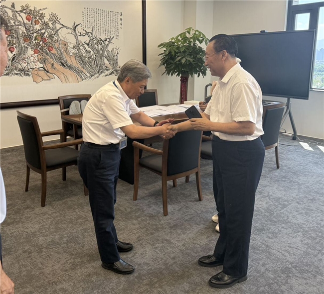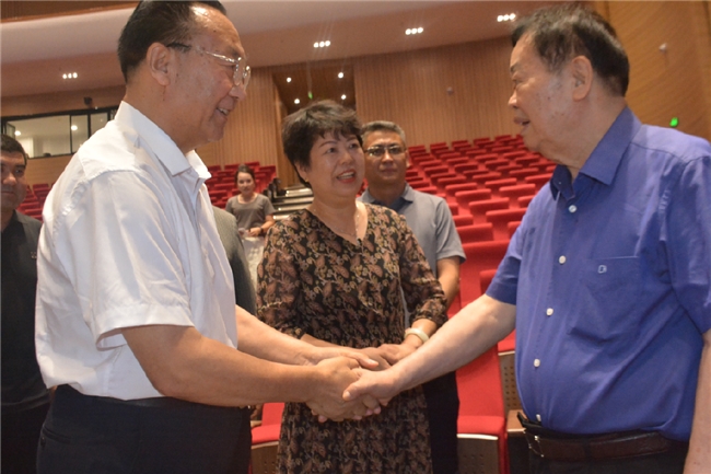 图12、作者刘书环与福耀科技大学校长王树国交流