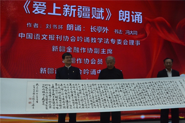 文脉传承:辞赋赋能文旅融合。在地域文化与文旅融合领域,刘书环的辞赋作品同样绽放光彩。3月1日,《爱上新疆文化会客厅》在乌鲁木齐举行揭幕仪式,刘书环为此创作的《爱上新疆文化会客厅赋》重磅推出。支天文会长、李羽执行会长说,此赋锚定一带一路新疆在国家全局中的“五大战略定位”,推动多功能于一体的综合性文化平台,让更多人深入了解这片土地的真实、开放与包容。