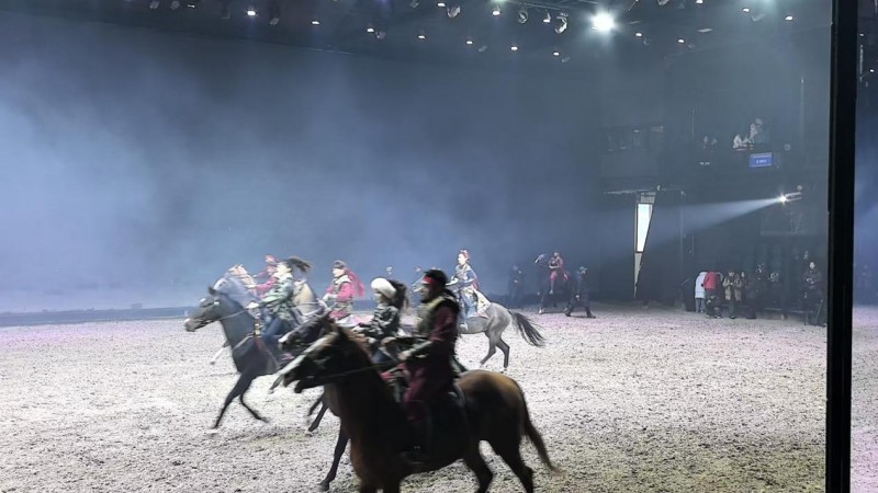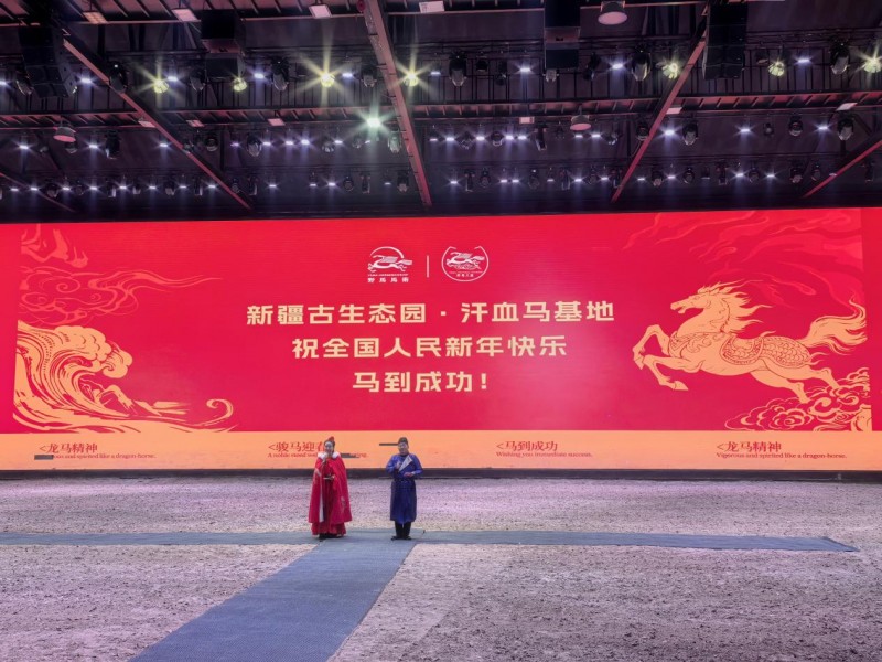 本网讯 诗歌宝马交融,文化旅游激荡。 2026年元旦,一场人和马共同演绎的力与美共鸣,诗与梦交融的跨界艺术盛宴,在新疆古生态园汗血马基地隆重上演。