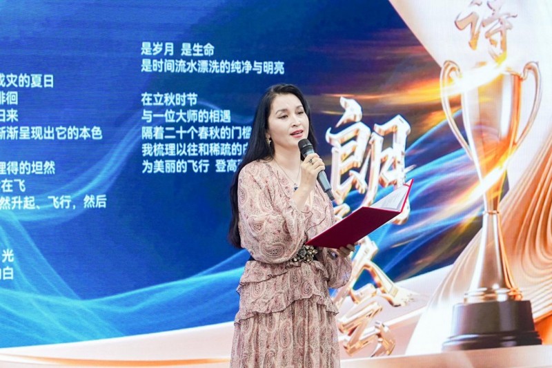 在颁奖典礼中的朗诵会环节,来自开普天下公司和鲁迅文学院的学员朗诵了本届获奖诗人和部分评委的九首诗歌,他们充满深情的朗诵或诠释让与会嘉宾感受到了来自于诗歌河情感的魅力。最后,三位朗诵者联袂朗诵了本届获奖诗人田毅的长诗《望京诗章》的选章《欢迎下次光临》,将朗诵会推向高潮。