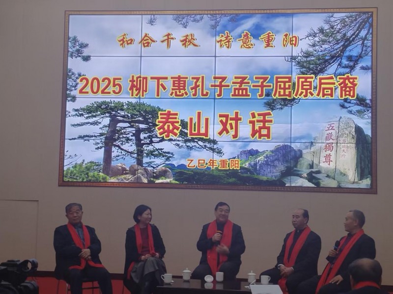 对话围绕《千秋文脉共炎黄》《和圣文化仰昆仑》《柳下惠风沐千秋》《重阳泰山话长寿》《继往开来寄后昆》五个板块。