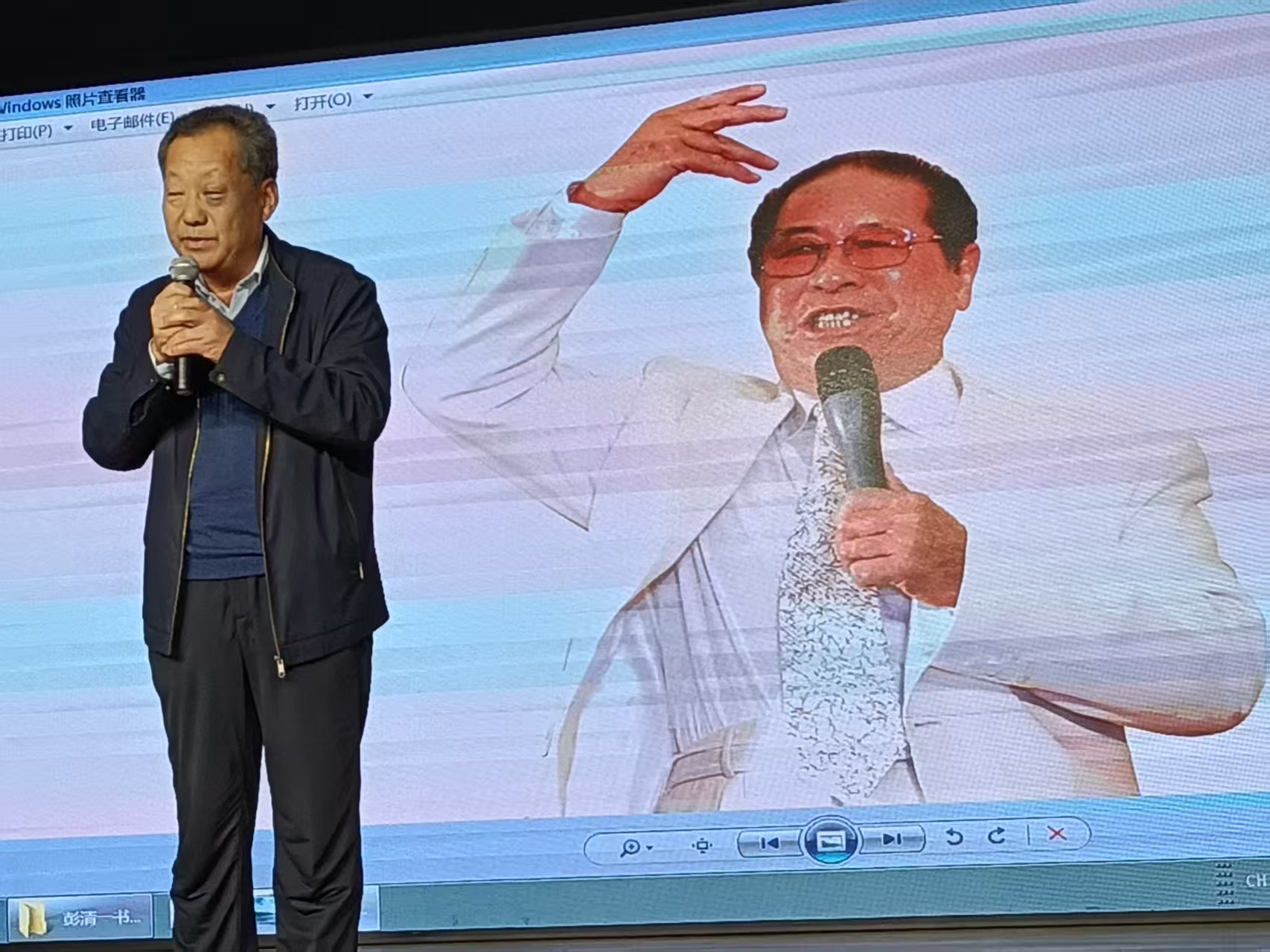 王新华,彭清一师门弟子、著名演讲家翟杰教授,从山西太原赶来参会的山西省社科院彭氏文化研究中心副主任兼秘书长、著名广告人彭国良等,分别从亲身经历的角度,谈了他们与彭清一的交往,聆听彭清一演讲所收获的教益。主讲人彭援军展示了他所收藏的《火花》杂志封面彭清一演讲风采、中央文明办邀约函、深圳庆三八演讲活动海报、彭清一信札、彭清一早年演出节目单、早年演讲入场券,以及彭清一著作《铸魂曲》《这样演讲最有效》《演讲的力量》、《师者彭清一》《激情与梦想》等。