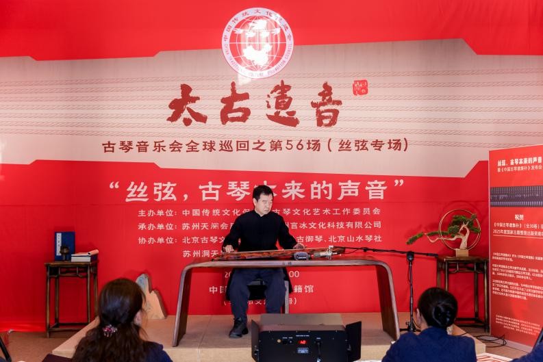 2025年11月16日,“太古遗音——古琴巡回音乐会”[全球巡回百场计划第五十六场]成功在北京市文津街七号举行。此次音乐会由中国传统文化促进会古琴文化艺术工作委员会主办,承办单位:苏州天阕会展服务部,苏州言冰文化科技有限公司,协办单位:北京古琴文化研究会、苏州洞天琴苑、倪琴古琴(南通)有限公司、北京山水琴社、北京盘古御琴、璞睿生活艺术、琴书山房、爱古琴等多家单位协办,琴者知音们相聚在古色古香的传统建筑空间,共同演绎、聆听中国古琴这一世界级非遗的独特魅力,为传播古琴文化尽力发声。