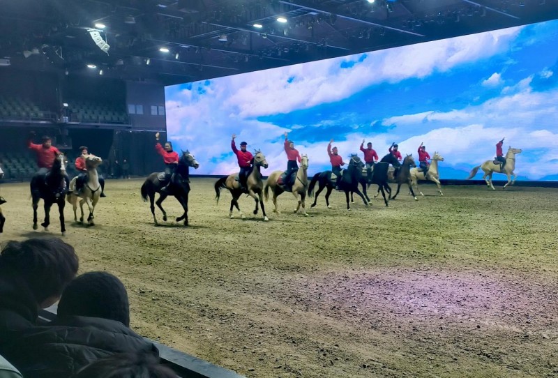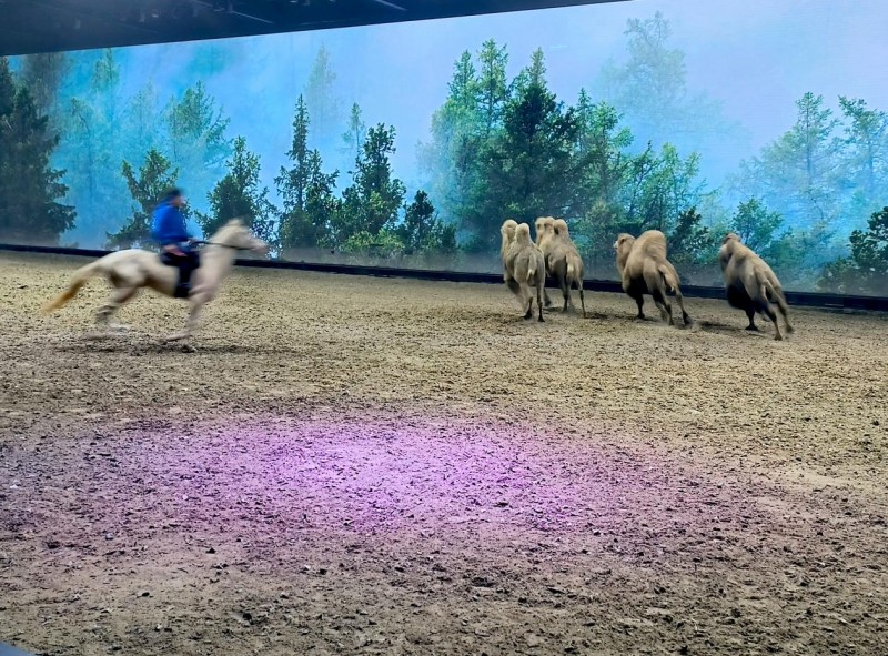新疆古生态园汗血马基地常年面向游客开放。这里不仅有专业的马术表演、骑马体验项目,还配套了丝路驿站文化主题酒店。住在该酒店,游客能够免费游览,与“汗血宝马”沉浸式互动,面对面感受马文化魅力;此外,基地内的硅化木林、陨石群、胡杨林等独特生态景观,使其兼具生态博物馆的属性。