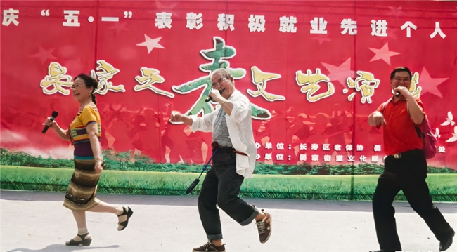 退休后刘明珠(左)与裴天林(中)彭国良仍活跃在舞台上