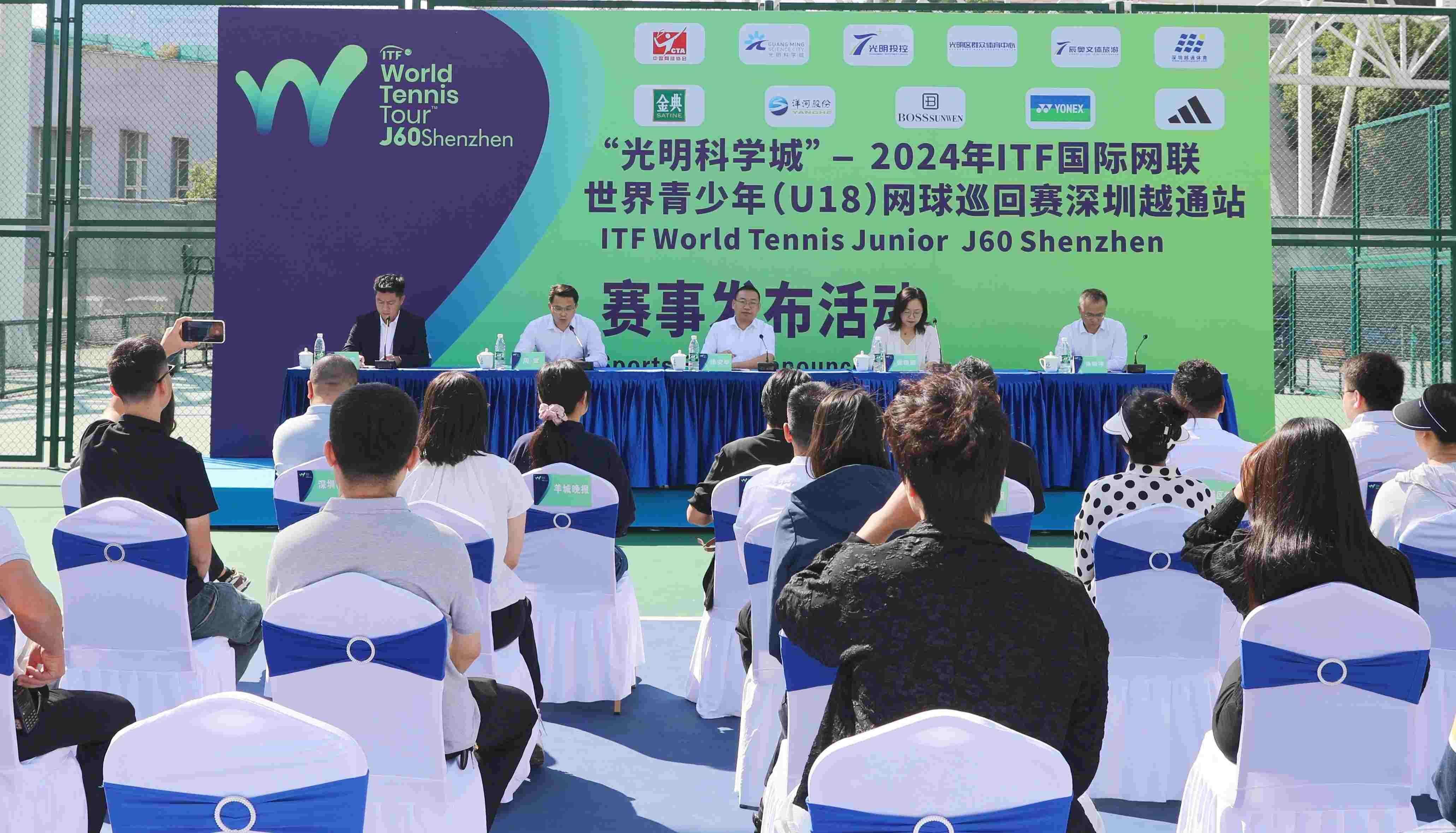 11月7日上午,“光明科学城”—2024年ITF国际网联世界青少年U18网球巡回赛深圳越通站赛事发布活动在深圳市光明区群众体育中心举行。
