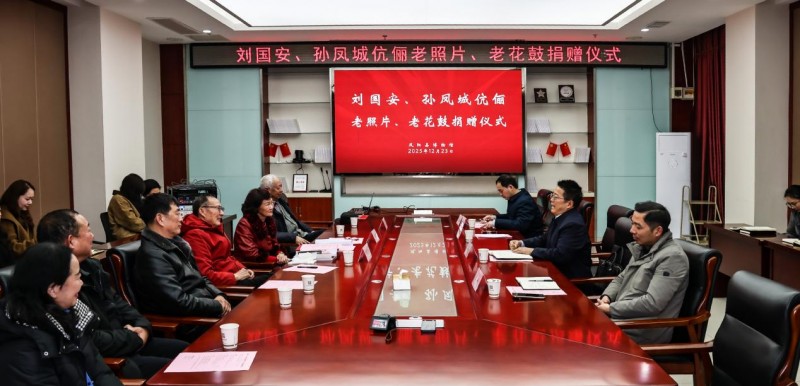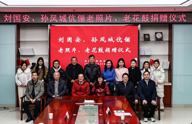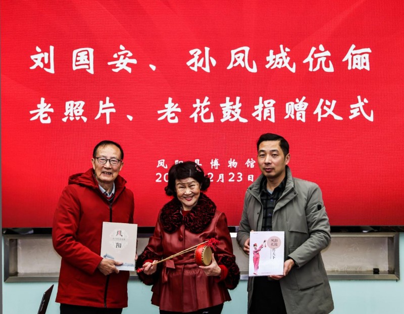 凤阳县电视台原副台长刘国安、国家级非物质文化遗产凤阳花鼓代表性传承人孙凤城,将凝聚半生心血的影像资料、花鼓艺术珍品无偿捐赠给凤阳县博物馆,为家乡留存下鲜活的历史记忆与深厚的文化根脉。 凤阳县委常委、宣传部部长李锦柱,县文化和旅游局局长杨燕,县文化馆馆长王兴,县明史研究会会长唐更生,县博物馆馆长金泽余、副馆长刘欣等文博单位负责人及工作人员,伉俪二人的好友、同事吴晓泉、夏玉润,国家级社会体育指导员、凤阳县老体协副主席梅周成,孙凤城的凤阳花鼓传承徒弟金贡琴、邓媛媛等出席仪式。
