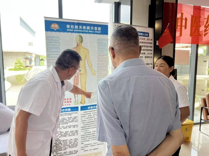 张少华院长在给宾客诊疗后,还现场为宾客讲解人体脊柱、经络保健等实用知识,人体软组织疼痛和炎症与脊柱损伤的关系。他讲到80%以上的慢性病痛源于软组织损伤或劳损后遇寒凉而形成的瘀堵,导致气血循环不畅、炎症迁延。让他们了解中医理念;直观呈现中医外治的康养效果;让康养理念真正融入宾客的日常起居。