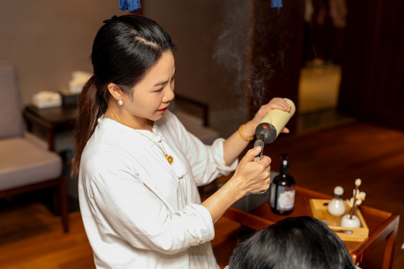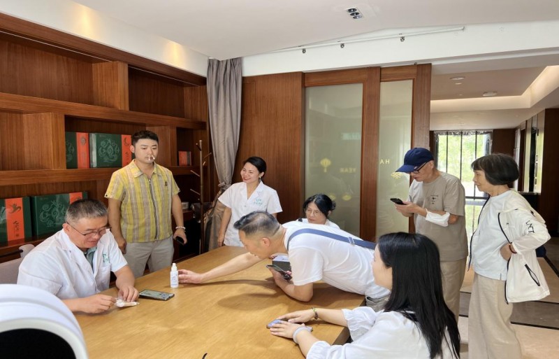 启动仪式现场,张少华院长从祖传中医的基础上,结合数十年的研究和创新实践临床经验,为到场宾客提供“一对一”辨证问诊服务——从“望(观宾客的精神、姿态)、闻(听宾客病史)、问(询宾客症状与工作性质)”,以切脉改用“触摸”找病灶,到用独创的中医药靶向透皮疗法给宾客调理,并对宾客常见的失眠、颈肩腰腿痛等问题,结合中医“治未病”理念给他们细致解读,建议定制化康养方案,让宾客在轻松的度假氛围中获得专业康养指导。
