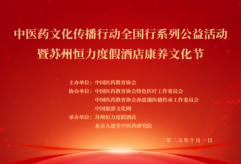 本次活动由中国医药教育协会主办,中国医药教育协会特色医疗工作委员会、中国医药教育协会孙思邈医德传承工作委员会、中国旅游文化网协办,北京九恩堂中医药研究院、苏州恒力度假酒店承办。特别联动中国医药教育协会孙思邈医德传承工作委员会专家、九恩堂军民融合课题组组长张少华团队驻场开展公益诊疗服务,将权威医疗资源与酒店的度假场景深度融合。