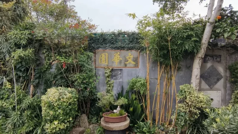 最令我驻足良久的,是腊梅旁矮墙里嵌着的三块砖雕,上面刻着朴拙的“文华园”三字。沈复在《浮生六记》里写过这种造景之法,“推窗如对石壁,觉其俊峭”。此刻,苍古的石壁对着鲜活的梅枝,一刚一柔,一静一动,在冬日的斜阳里默默对谈。一进这园子,便仿佛踏入了明朝。那印着岁月痕迹的明代石阶,那泛着时光斑驳的老砖雕,那形制古雅的旧花盆,都在低语着历史。时光在这里是可以触摸的,叠在石纹里,渗在梅香中。墙角一只青釉陶瓮,瓮口积着薄薄的雪,雪下似有青苔暗生,恍惚间,竟如老家院角那只盛过雨水的旧瓮。