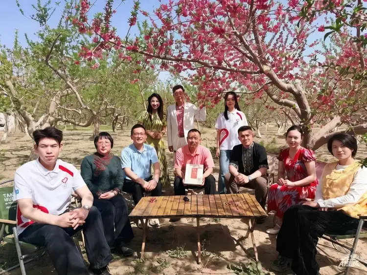 每年春天,“春赏桃花”活动都会吸引众多游客前来。今年的桃花节已是第八届,主题是“春风十里·寻梦桃花源”。活动期间,文艺展演精彩纷呈,国风旗袍秀典雅动人,美食街香气四溢。游客们不仅能在万亩桃林里尽情拍照打卡,还能见证新人在浪漫的桃花雨中登记结婚,那甜蜜的场景,仿佛连结婚证都散发着桃花的香气。4月3日,我在桃花林亲眼见证了20多对青年男女领取结婚证,他们幸福的模样,让我坚信这沙漠边缘的桃林一定会给更多的有情人带来好运。
