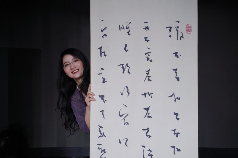 吴林烨的多重专业背景,为舞台剧的“艺术融合”提供了关键支撑。作为编剧,她将故事与多种艺术形式结合;作为诗人,她把动人的原创诗歌作品融入戏剧;作为青年书法家,她亲自书写舞台上的书法屏风,让笔墨气韵自然融入视觉审美,还曾举办“时间以痛吻我,我报之以温柔”诗书画光影展;同时,她还是北京电视台主持人,对语言节奏与韵律的精准把握,也为剧中朗诵环节的指导奠定了坚实基础。正是由于她对戏剧、诗歌、书法的熟练掌握,才让不同艺术形式在舞台上悄然融为一体。