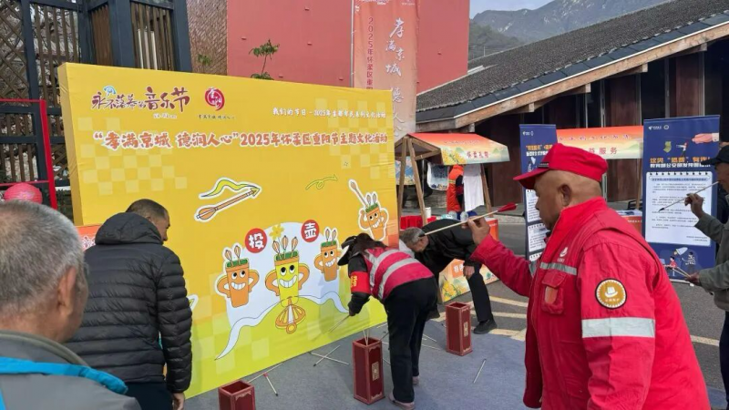 “北沟重阳荟”市集展销以多元体验激活节日活力。二十余个特色摊位涵盖传统游艺、怀柔特产、公益服务三大类内容。重阳游艺区的灯谜竞猜、投壶祈福引得老少同乐;怀柔礼物区的板栗、咖啡、“永不落幕”文创等地域好物通过展销让更多人了解怀柔、爱上怀柔;反诈公益展位的志愿者则以案例讲解普及防骗知识,让市集兼具趣味与公益属性。