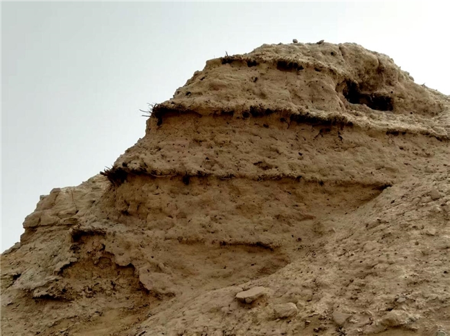 图为第四次全国文物普查期间阿克苏地区重大历史文物新发现唐代胡杨岛烽火台(位于阿克苏市西郊)