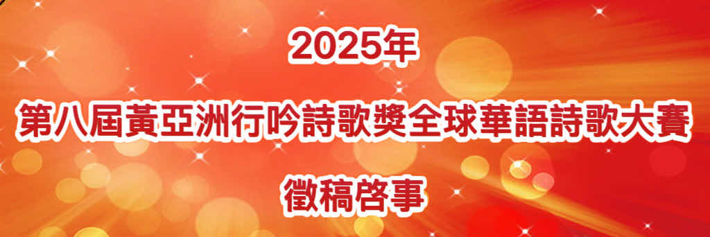 [征文活动] 2025年第八屆黃亞洲行吟詩歌獎全球華語詩歌大賽徵稿啓事