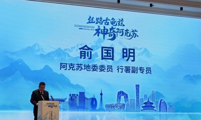 活动伊始阿克苏地区地委委员、行署副专员俞国明发表了热情洋溢的讲话。他向与会嘉宾介绍了阿克苏地区在文化旅游发展方面的战略规划和目标。俞国明表示,阿克苏地区拥有悠久的历史、独特的民俗风情和壮丽的自然景观,是古丝绸之路的重要节点。近年来,阿克苏地区高度重视文化旅游产业的发展,致力于将其打造成为地区经济发展的重要支柱产业。此次来北京举办推广活动,就是希望能够借助北京的资源和影响力,让更多的人了解阿克苏、走进阿克苏,感受“丝路古龟兹,神奇阿克苏”的独特魅力。