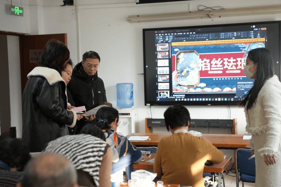 清华园街道办事处主任向春在非遗手工活动现场,与居民们亲切交流,观摩非遗技艺展示,并鼓励大家积极参与到非遗传承的行列中来,让古老的非遗技艺在新时代焕发出新的生机与活力。