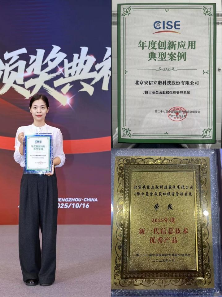 作为国内软件领域最具影响力的盛会之一,软博会不仅是技术交流的平台,更是优秀产品与解决方案的展示舞台。在这场盛会中,北京安信立融“J博士基金及股权投资管理系统”,一举斩获两项重磅荣誉: