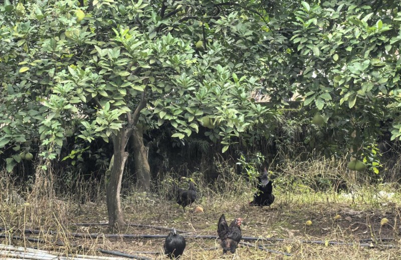 授粉结束,花瓣谢完10天,他又立刻喷洒保果剂,防止幼果掉落。5月底,蔬果的活儿又开始了——为了让剩下的果子长得又大又好,他要把果形歪的、扁的、不成形的,长得太密的果子蔬掉。这样的活儿,要进行3到4次,每次他都蹲在树下,仔细挑选,生怕漏掉一个孬果,影响整体的品质。炎热的6月,蜘鸟多了起来,这些蜘鸟爬过的柚果会掉落,他又忙着做防护措施,守护这些“宝贝”。每次使用杀虫剂,他都严格按照政府农技员的要求,控制好剂量,既保证效果,又不影响柚果的品质。